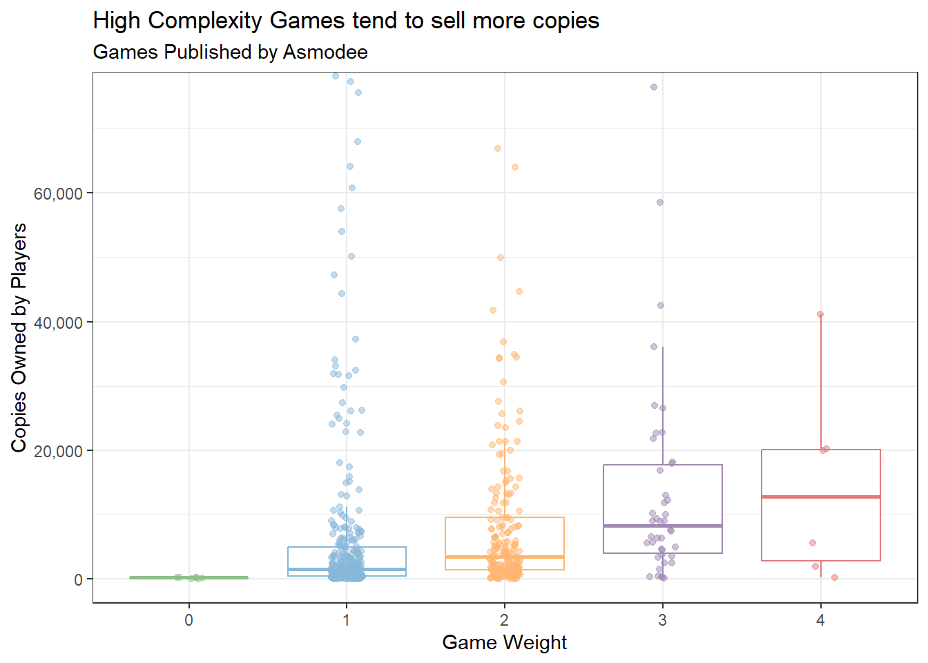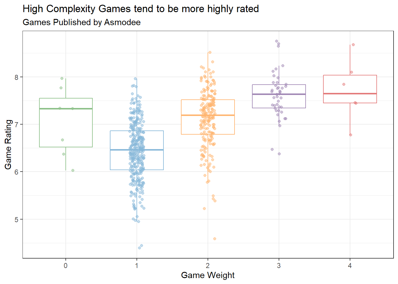 We again see that high complexity games perform tend to perform better. Why is it that Asmodee doesn’t publish more high complexity games then?